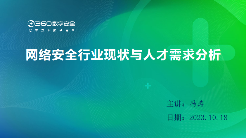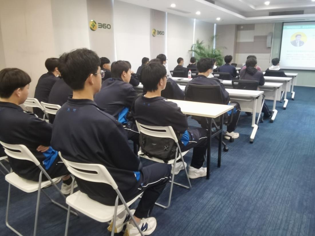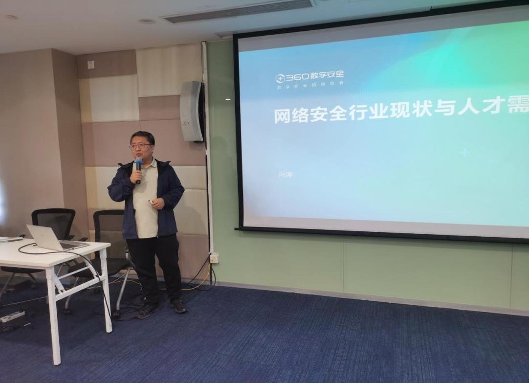2023年10月18日下午1:30,学校信息技术系计算机网络专业2214、2215班学生在殷杰、曲晓芳、高泽惠、张朋四位老师的带领下,前往三六零数字安全科技集团有限公司,聆听了一场主题为“网络安全行业现状与人才需求分析”的专题讲座,讲座专家为三六零公司的冯涛老师。
