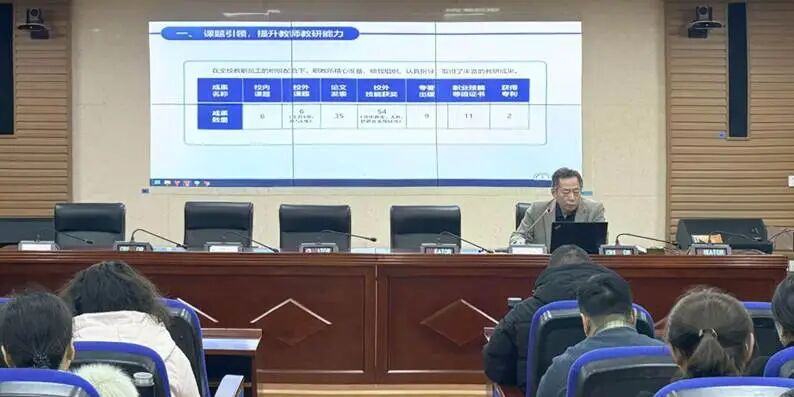 学校教科研方面的累累硕果成为首个聚焦重点。职教所吴春禹主任从“教研活动深化、技能赛事组织、成果转化应用”三大维度,系统梳理2025年学校教科研工作的推进脉络与亮眼成果。在全校教职员工的协同配合下,职教所精心筹备、精准指导,推动教科研工作结出丰硕果实---校内校外论文发表数量稳步提升,职业技能竞赛奖项斩获颇丰。这份成绩单不仅为教师专业成长搭建了坚实平台,更让优质教研成果反哺课堂教学,为学校教学质量的持续提升注入“源头活水”,也为后续教科研工作的深化开展提供了清晰可循的实践路径。