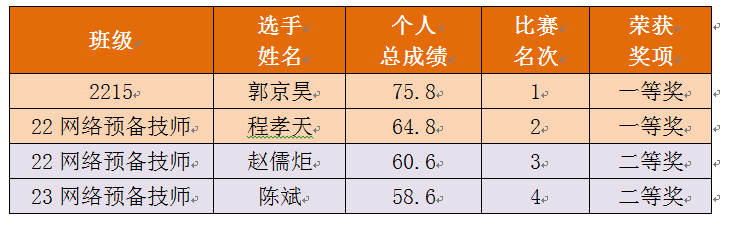 经过激烈角逐,最终有10名选手分获一、二、三等奖。竞赛结果最终如下: