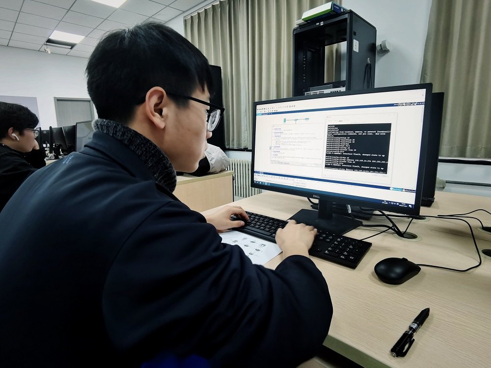 为了提高学生的计算机网络管理技能和服务器运维技能水平,促进我校计算机网络应用专业教学水平的提升,为今后我校参加市级网络技能大赛选拔选手,2023年11月21日下午15:00,由信息技术系组织与实施了“网络建设与运维”竞赛。经过前期的初赛选拔,最终有15名同学参加了决赛,由殷杰、程耀华老师担任评委。