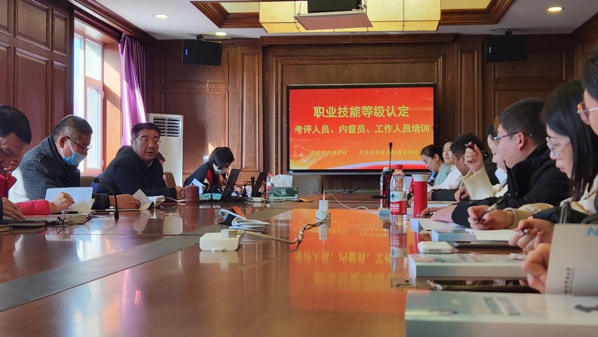 举办这期培训班旨在促进和推动北京市供销学校北京市经贸高级技术学校(以下简称“两校”)职业技能等级认定工作开展。为适应人社部技能人才评价机制改革的需要,两校经过艰苦努力,组建一支考评人员、内督员、工作人员队伍。培训人员主要来自两校符合要求的一线教师和管理人员,还有14名考评人员来自博银网格(北京)科技集团有限公司。为实现职业化技能等级认定工作的科学化、标准化、制度化,履行好社会责任,为国家现代化人才培养助力,为全社会有认定需求的劳动者服务,11月24日至11月26日,举办为期3天的培训。本次培训班为方便参训人员学习,采取线下线上相结合的授课方式。培训内容主要包括:职业技能等级认定政策解读;考评人员管理及考评工作流程,考评技术和方法,考评工作经验交流;质量督导工作,质量督导人员管理办法,技能人才评价质量督导实务,质量督导实践分享。学员参加学习热情很高。校外学员都是乘公交从市里的单位赶来。校内的老师也在百忙中挤出时间参加。
