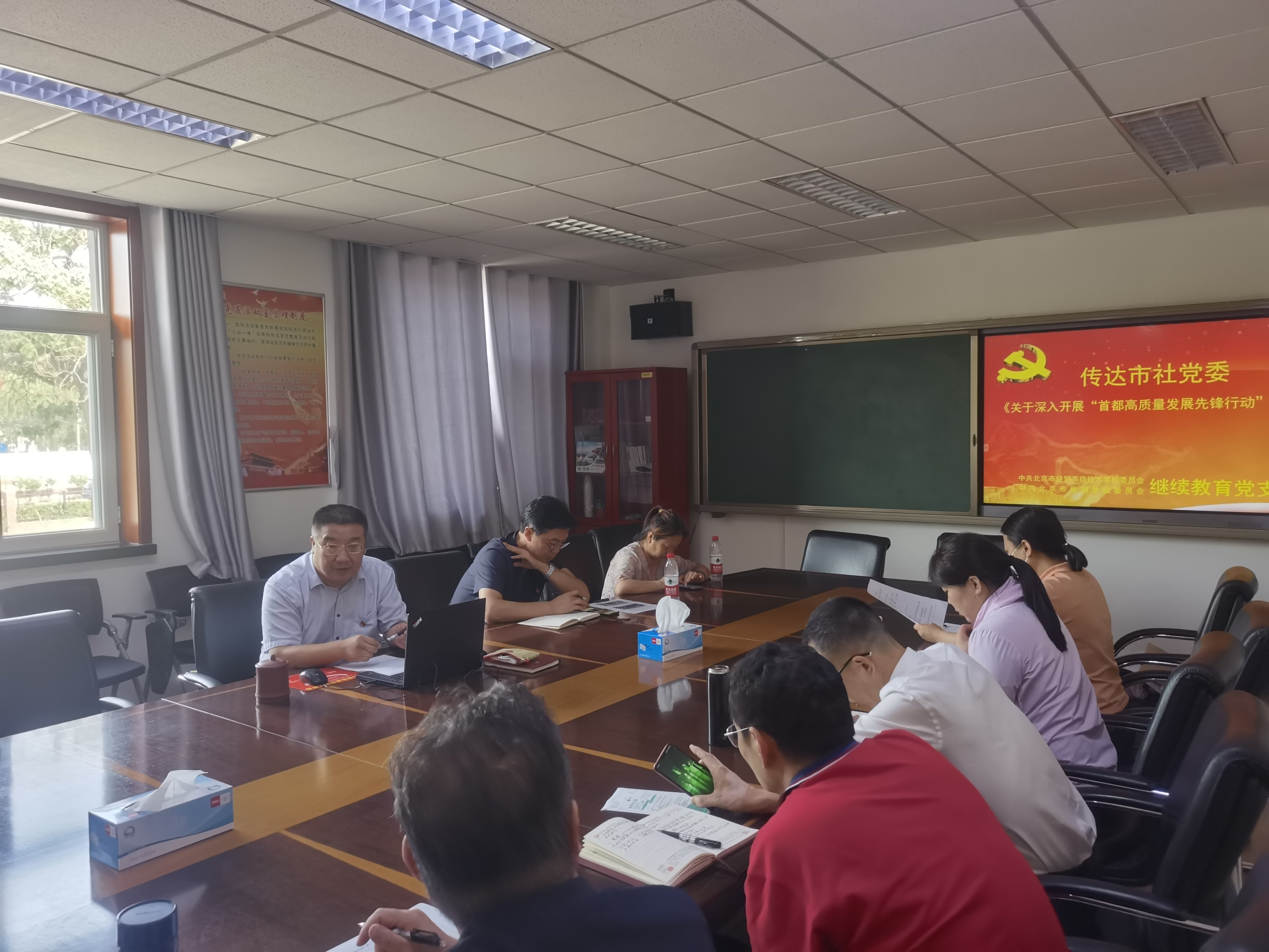 第一部分,传达市社党委文件。会议首先由支部宣传委员丁联在同志传达学习市社党委《关于深入开展“首都高质量发展先锋行动”的通知》文件精神。