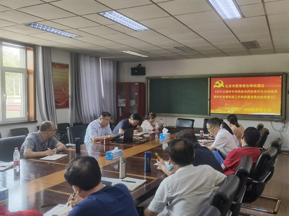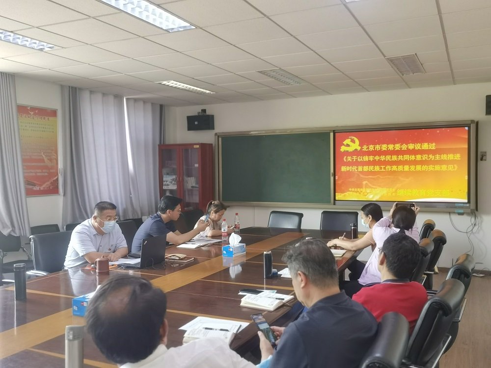 第三部分,学习民族宗教文件。由支部书记张玉超同志通过音视频方式带领全体党员学习了“习近平在中央民族工作会议上强调《以铸牢中华民族共同体意识为主线,推动新时代党的民族工作高质量发展》”;“以铸牢中华民族共同体意识为主线,推进新时代党的民族工作高质量发展的纲领性文献-深入学习贯彻习近平总书记在中央民族工作会议上的重要讲话”;“习近平在全国宗教工作会议上强调,坚持我国宗教中国化方向积极引导宗教与社会主义社会相适应”;“北京市委常委审议通过《关于以铸牢中华民族共同体意识为主线,推进新时代首都民族工作高质量发展的实族意见》”等文件。
