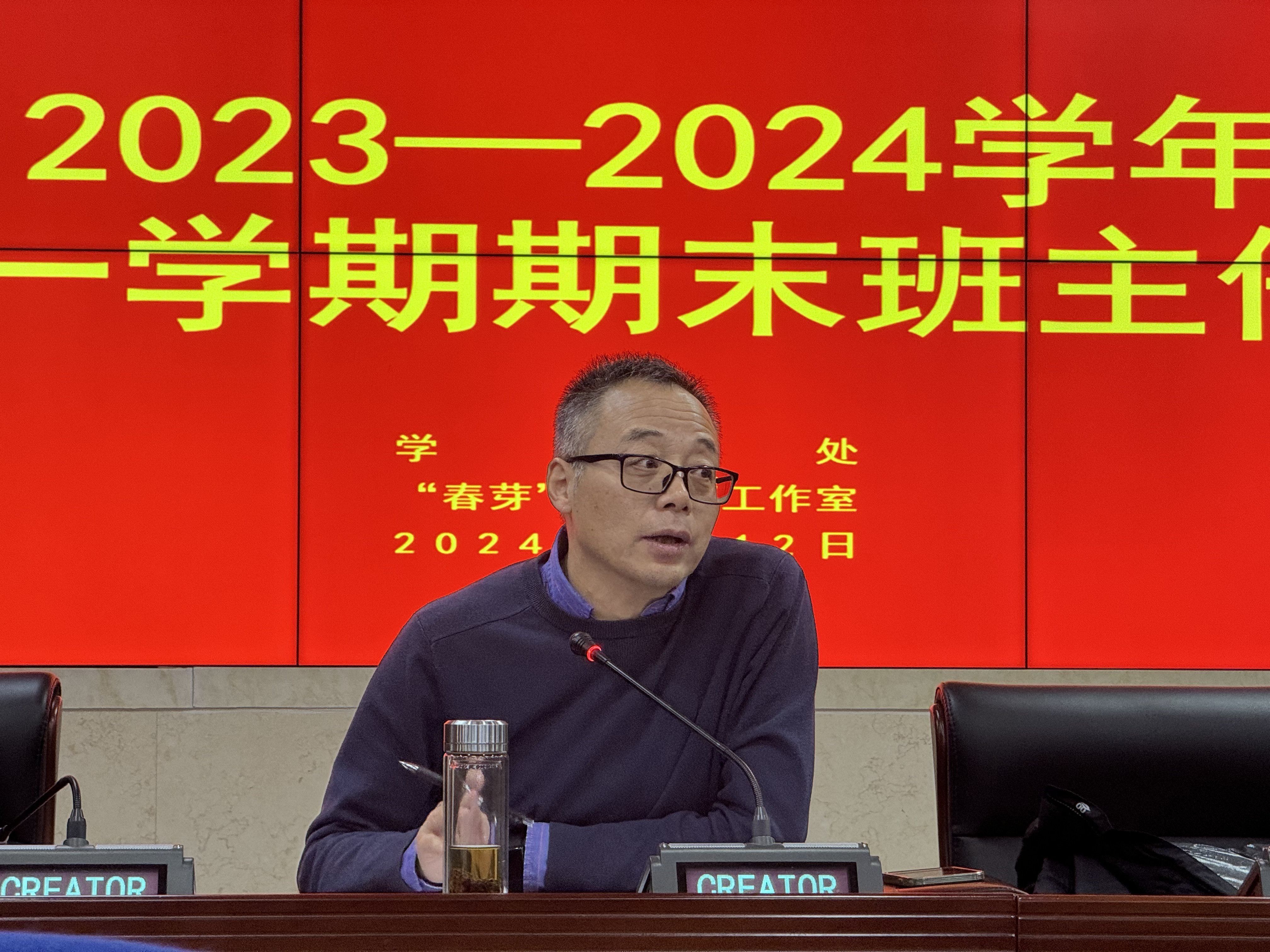 我校于2024年1月12日召开了2023-2024学年第一学期期末班主任大会。会议由陈巨东副校长主持,与会领导及老师有学生处薛飞处长、团委书记刘佳妮老师、四系主任和全体班主任老师。
