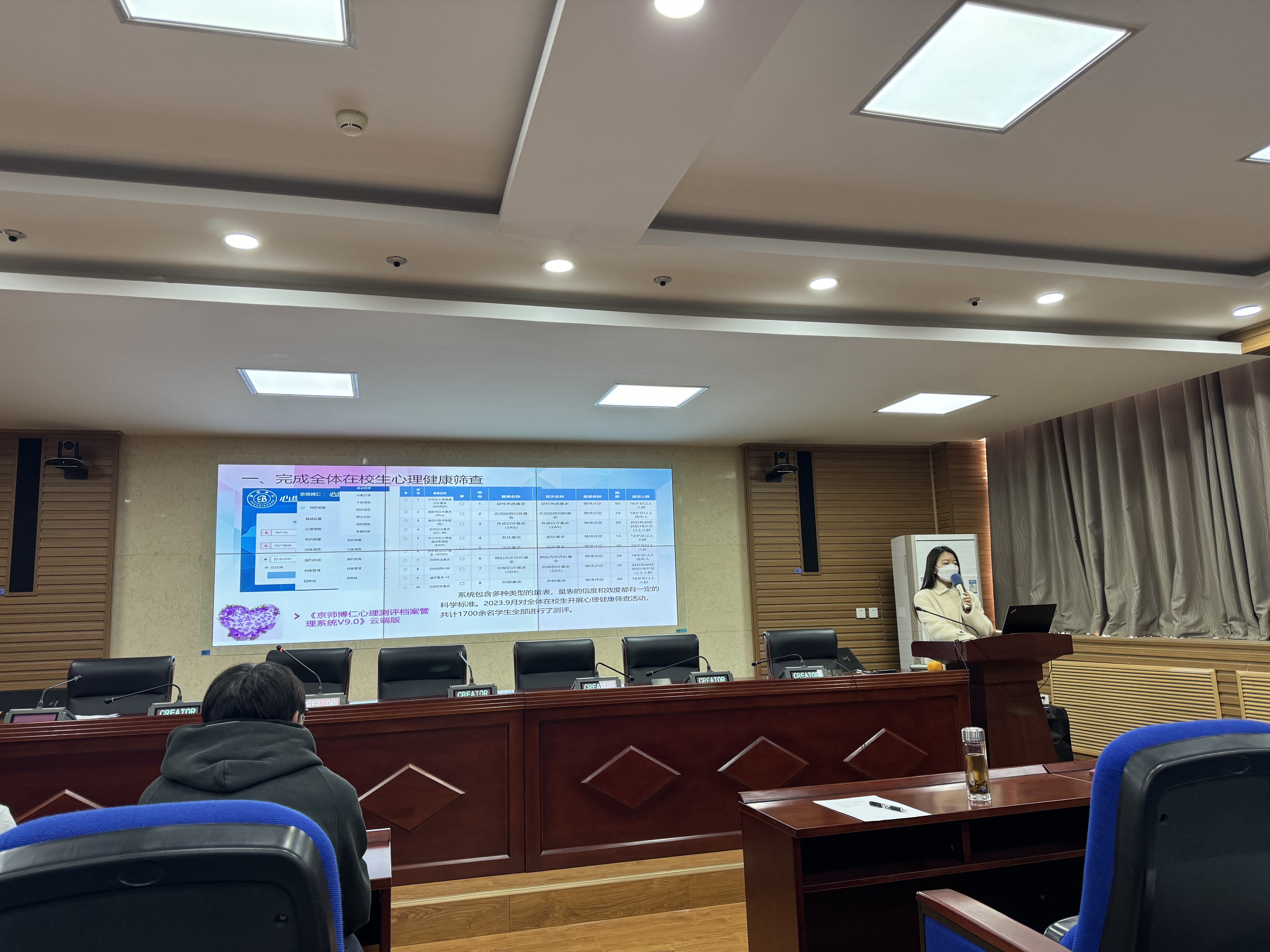 接下来由心理咨询室的郭媛媛老师进行工作总结,她汇报了一年以来学校心理咨询工作的开展情况。