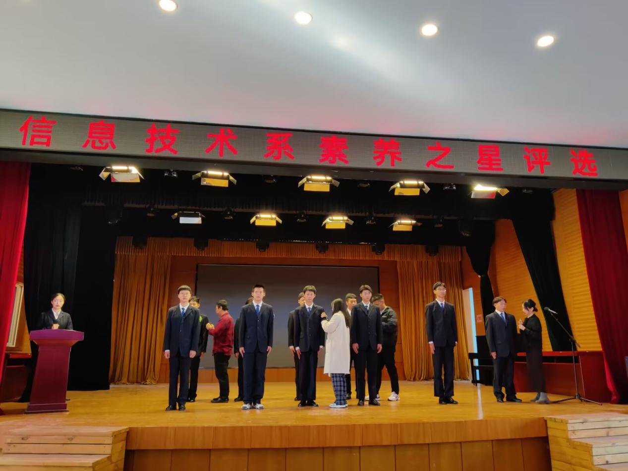 通过素养之星评选活动,在全系范围内掀起一股弘扬正气、倡导真善美、苦练技能、争做“有理想、敢担当、能吃苦、肯奋斗”的新时代职校生的热潮。希望信息技术系全体学生能努力传承中华民族的传统美德,学习文明礼仪,努力践行社会主义核心价值观,精益求精磨炼技能,自强不息,以实际行动诠释执着与坚持,书写自己精彩的青春篇章!
