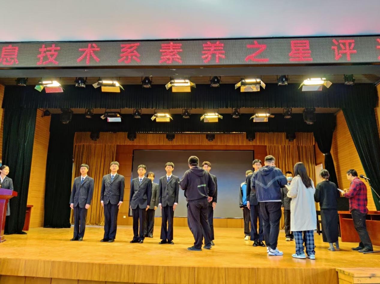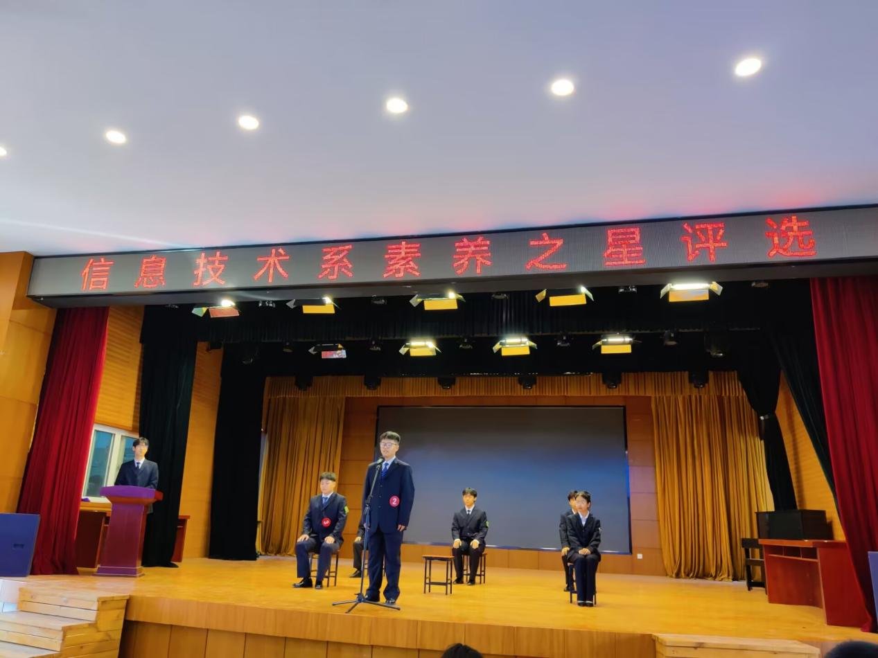 为全面展现我校“以素养为根基、以技术为本位”的学生风貌,培养学生蓬勃阳光的青春气质和积极进取的拼搏精神,在系部树立文明典型并用榜样的力量影响全系学生,激励全体学生共同进步,最终形成积极正向的校风班风,10月16日上午8:30,信息技术系在八号楼二层礼堂举行了本学期第一次“素养之星”评选活动,其中23级新生到礼堂观看,其他班级学生在教室观看直播。评委由信息技术系各班班主任和各专业教研主任担任。