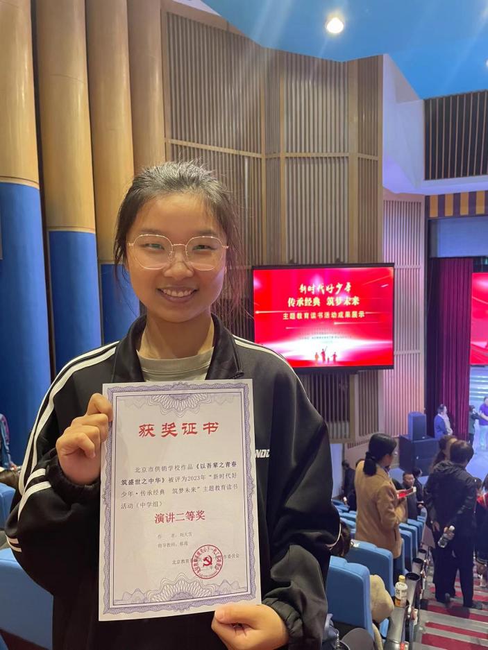在北京教育系统关心下一代工作委员会组织的2023年“新时代好少年”主题教育读书活动中,学校积极开展、教师精心指导,学前教育系刘天雪同学荣获佳绩,特此祝贺!