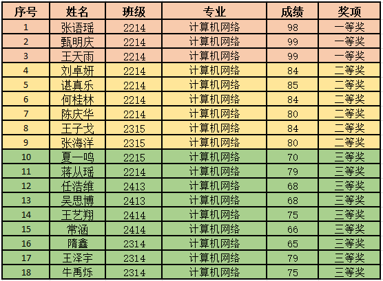 经过前期的层层选拔,进入决赛的共有18份优秀作品。评委曲晓芳和裴煜两位老师根据参赛要求认真评分严格筛选,最终评选出本赛项的一、二、三等奖。具体成绩如下: