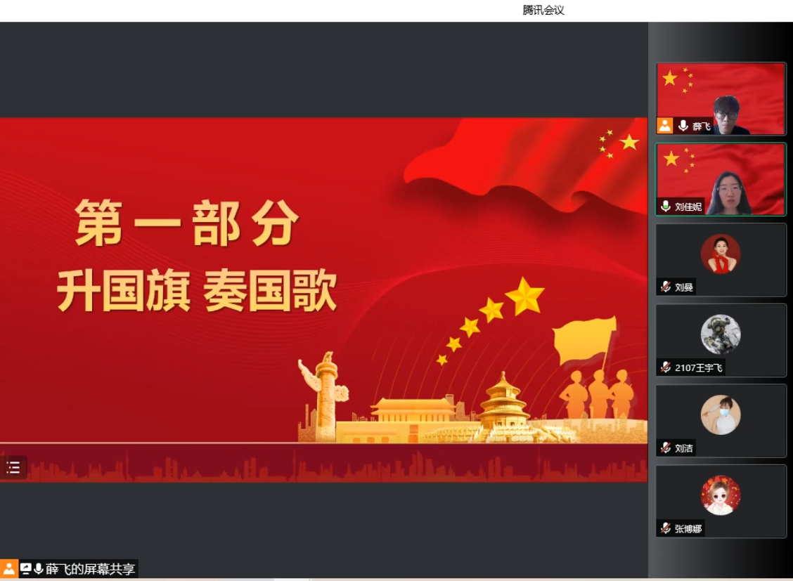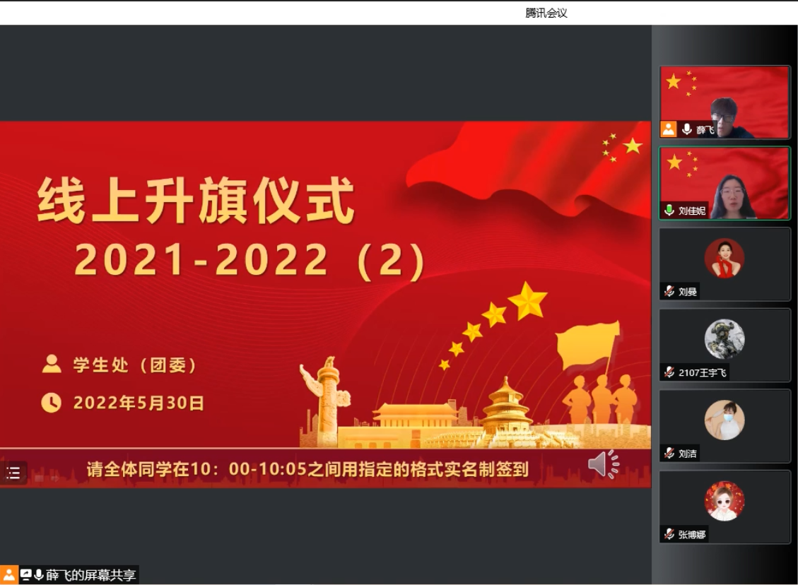 上午10:00整,学生处(团委)组织全体同学在线上会议中实名制签到,10:05升旗仪式正式开始。本次升旗仪式由团委书记刘佳妮老师主持。