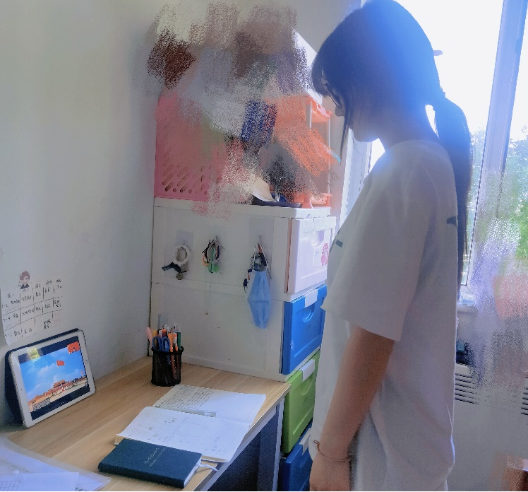 伴随着雄壮的国歌声响起,屏幕里,鲜艳的五星红旗正缓缓升起;屏幕外,全体师生肃然而立,在各自家中通过电脑、手机等设备,同一时间集结在“云端”,参加了这场特殊时期神圣、庄严的升旗仪式。