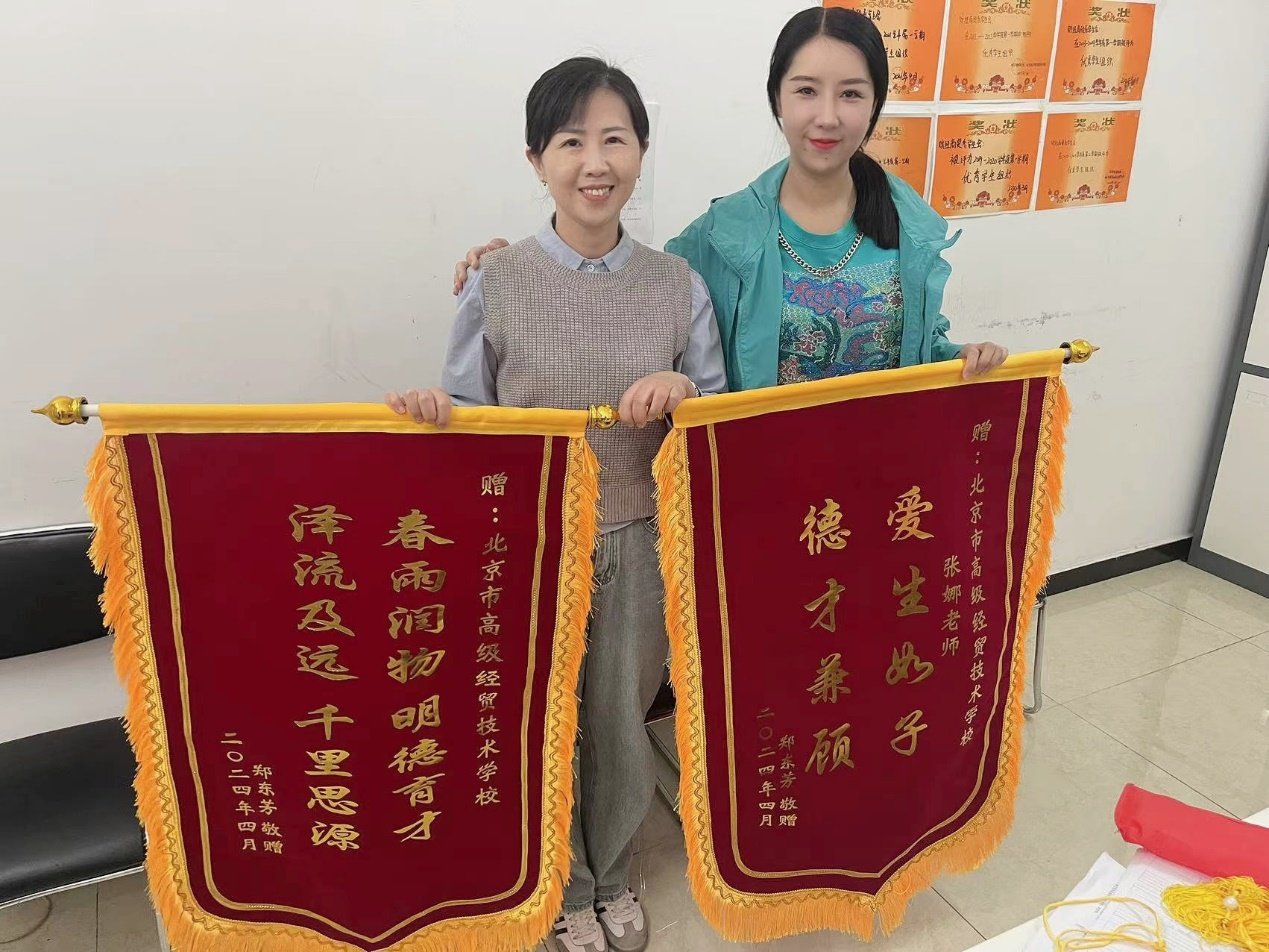 最美人间四月天,春风送暖柳如烟。2024年4月19日上午10时,财经商贸系会计专业2311班王紫凝家长将两面锦旗送至学校,以此表达对学校和班主任老师爱生如子,明德育才的感激之情。