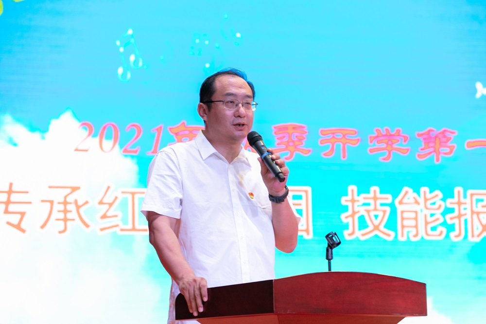 典礼结束后,校党委书记兼校长刘甫强在校礼堂为同学们讲授了题为《传承红色基因 技能报效祖国》的开学第一课。刘书记从什么是红色基因、为什么要传承红色基因、如何传承红色基因给同学们进行了深入浅出的讲解,他和同学们一起重温了党的发展历史,结合国家对职业教育的重视,为同学们指明了学习的方向,并对同学们提出殷切的期望。让同学们对党的历史有了更深层次的理解和把握,增进了对党的政治认同、思想认同、情感认同,坚定技能报国的理想!