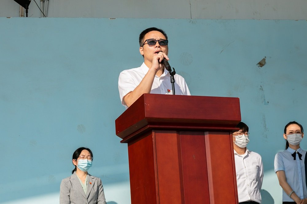 迎着2021年9月2日清晨的第一缕朝阳,学校全体师生在操场举行了2021年秋季开学典礼活动,在嘹亮的国歌声中,新学期的第一面五星红旗冉冉升起。党委副书记冯瑞臣代表学校向辛勤耕耘的老师们、勤奋学习的同学们致以亲切的问候和美好的祝愿。在致辞中对学生们提出了殷切期望,他希望同学们深刻领会习近平总书记在庆祝建党100周年大会上重要讲话精神,牢记初心使命,以“诚信工匠人”的理念去迎接新的挑战,向更高的目标努力奋进。袁哲老师的叮嘱以及信息技术系宋靖言同学的倡议,让学生们感受到了新学期一定要赓续红色基因,以“工匠精神”为动力,以“技能报国”为航标,坚定理想信念,磨炼坚强意志,锻炼强健体魄,为实现中华民族伟大复兴的中国梦时刻准备着,努力成为合格的职业劳动者。开学典礼由陈巨东副校长主持,全校学生、教职员工参加了活动。