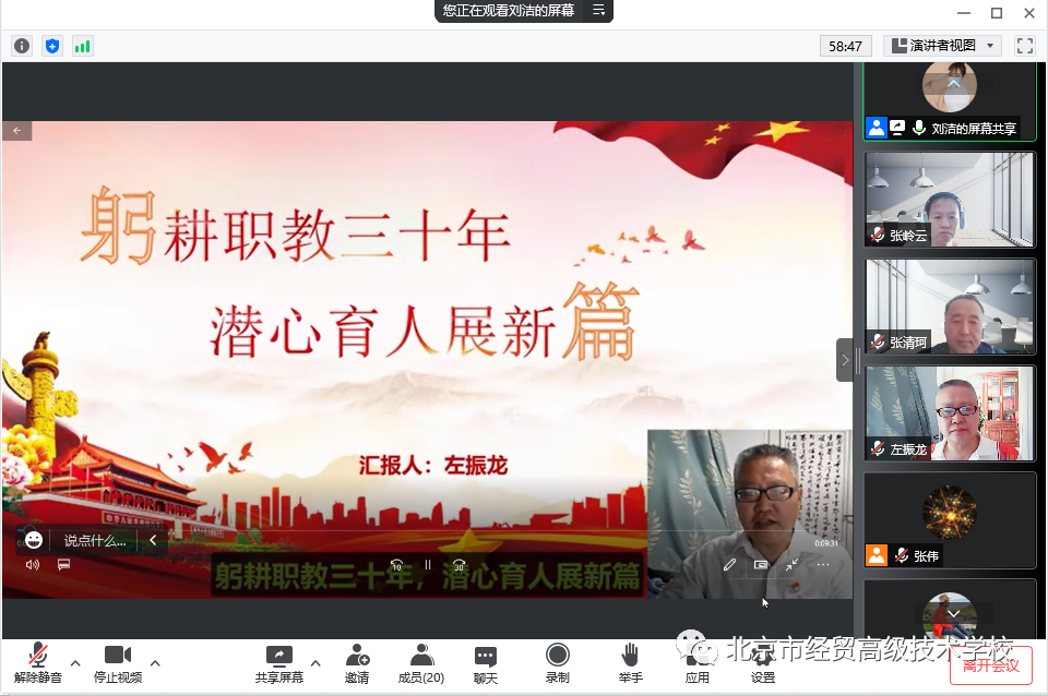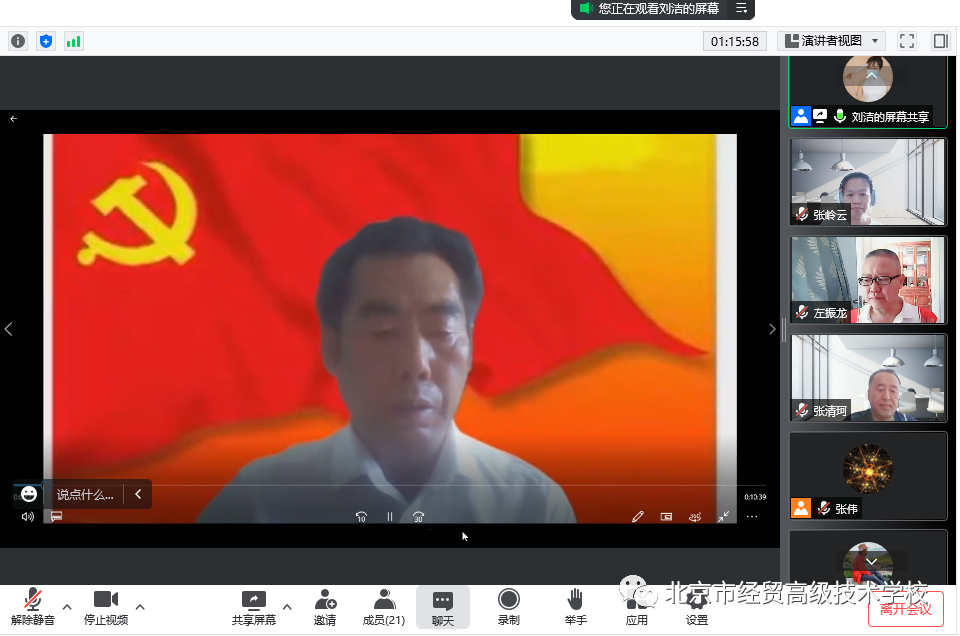 活动由支部书记张清珂同志主持,邀请我支部优秀党员左振龙、袁哲、辛生三位同志,通过线上视频汇报的形式进行了分享汇报。优秀党员事迹生动诠释了我校优秀党员教师的坚定理想信念、实干有担当、勤勉敬业奉献的精神风采。