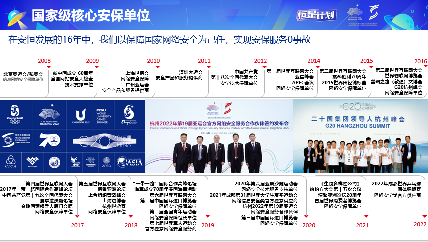 杭州安恒信息技术股份有限公司,是2007年5月由“国家千人计划”特聘专家范渊先生创办的国家级高新技术企业,中国知名的网络安全产品和服务提供商。国内总部设在杭州及北京,并在上海、南京、广州、深圳、成都、重庆、济南、西安等三十多个城市设有分支机构,服务客户包括政府、公安、企业、教育、金融、运营商、媒体、医疗、能源等20多个行业。目前已是享誉国内外的网络安全品牌,于2016年成功跻身“全球网络安全500强中国区榜首”,之后数年均被美国著名网络安全风险投资公司(Cybersecurity Ventures)评选为全球网络安全500强企业,2019年登陆科创板上市。