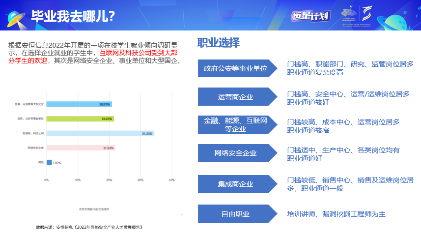 韩经理对有志于从事网络安全事业的学生提出了建议,对大家今后学习的蓝图和方向进行了指导,并指明了就业方向。希望学生在日常的学习和生活中,时刻牢记要以维护网络安全为己任,通过多种方式努力学习专业知识,强大自身,为国家的网络安全事业做出自己的贡献。