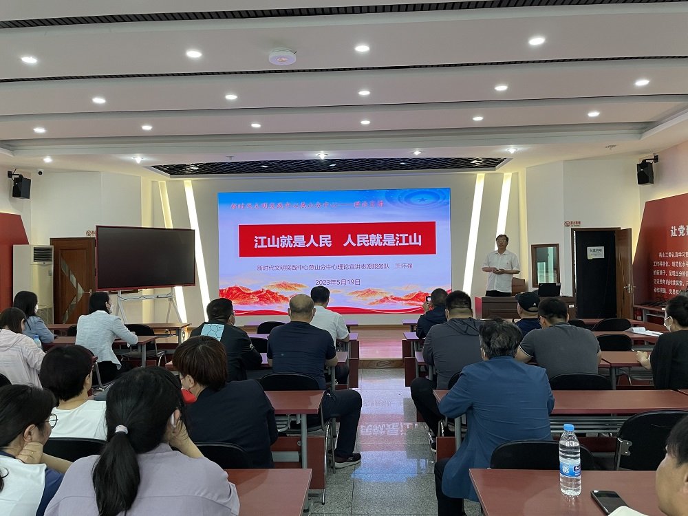 之后全体同志认真聆听了燕山分中心理论宣传志愿服务队王怀强老师以《江山就是人民 人民就是江山》为主题为全体党员讲党课,他就此次主题党课分别以人民立场是党的根本政治立场;江山就是人民,一切为了人民;人民就是江山,一切依靠人民;守民心,坚持群众路线等四个方面仔细讲解了我们党是在同人民群众的密切联系中成长、发展、壮大起来的,人民是党的力量之源和胜利之本。没有人民的支持,党就不可能生存和发展,就一事无成,因此,密切联系群众是我们党的最大优势。我们任何时候都不能削弱和丢掉这个优势,否则党的一切工作就会成为无源之水、无本之木,就会招致挫折和失败。
