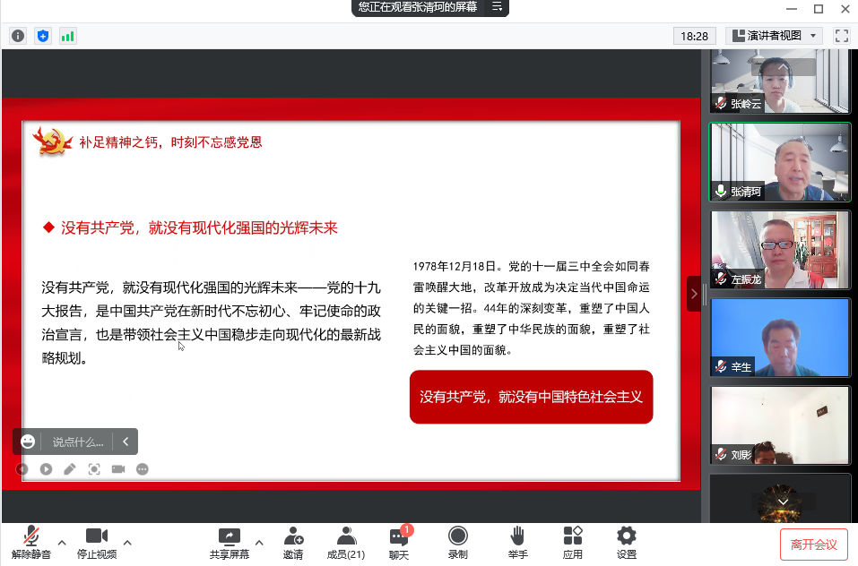 今年是中国共产党成立101周年,在这个特殊的时代背景、历史节点下,我们每一名党员都要在新时代展现新担当新作为、更加自觉地为实现新时代党赋予的历史使命而努力奋斗。按照学校党委关于党支部书记讲党课的相关工作安排,2022年7月15日上午,教学第二党支部召开了以“知党史 感党恩 跟党走”为主题的线上党课学习活动。