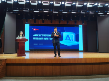 张志文副校长讲话强调,推动人工智能与教育教学深度融合是学校落实职业教育数字化转型的关键抓手,也是提升人才培养质量的必然要求。他希望全体教师珍惜此次学习机会,主动转变教学理念,认真钻研智能教学工具,将AI技术灵活运用到日常教学实践中,为打造高水平、现代化的职业学校注入新动能、贡献新力量。