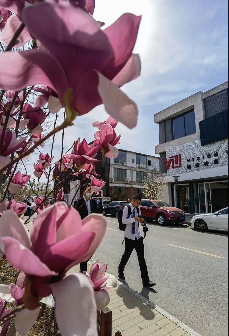 本次实践活动分为三组,18级两名同学负责拍摄春景图片,另三名同学负责拍摄春景视频,这两组由刘莹老师带队;1915班学生首要任务是参观园区,了解国内著名影像与影视企业上德大象,由上德大象总经理刘淼先生接待并讲解商业摄影棚的构造、运行模式和工作流程。