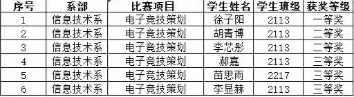 电子竞技策划内容不仅要表现专业特色,还要体现家国情怀。比赛现场,参赛选手用PPT详细介绍了自己策划方案的初衷、想法、主题以及具体内容。比赛过程展示了我校学生扎实的专业技能和较强的语言表达能力,赢得了评委的好评。最终比赛结果如下: