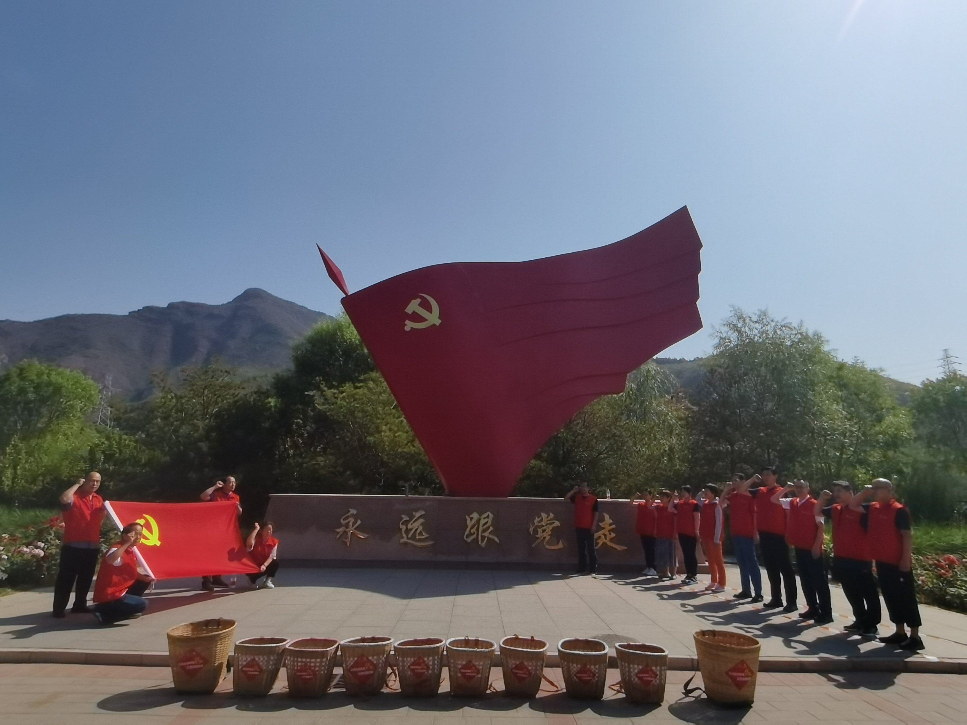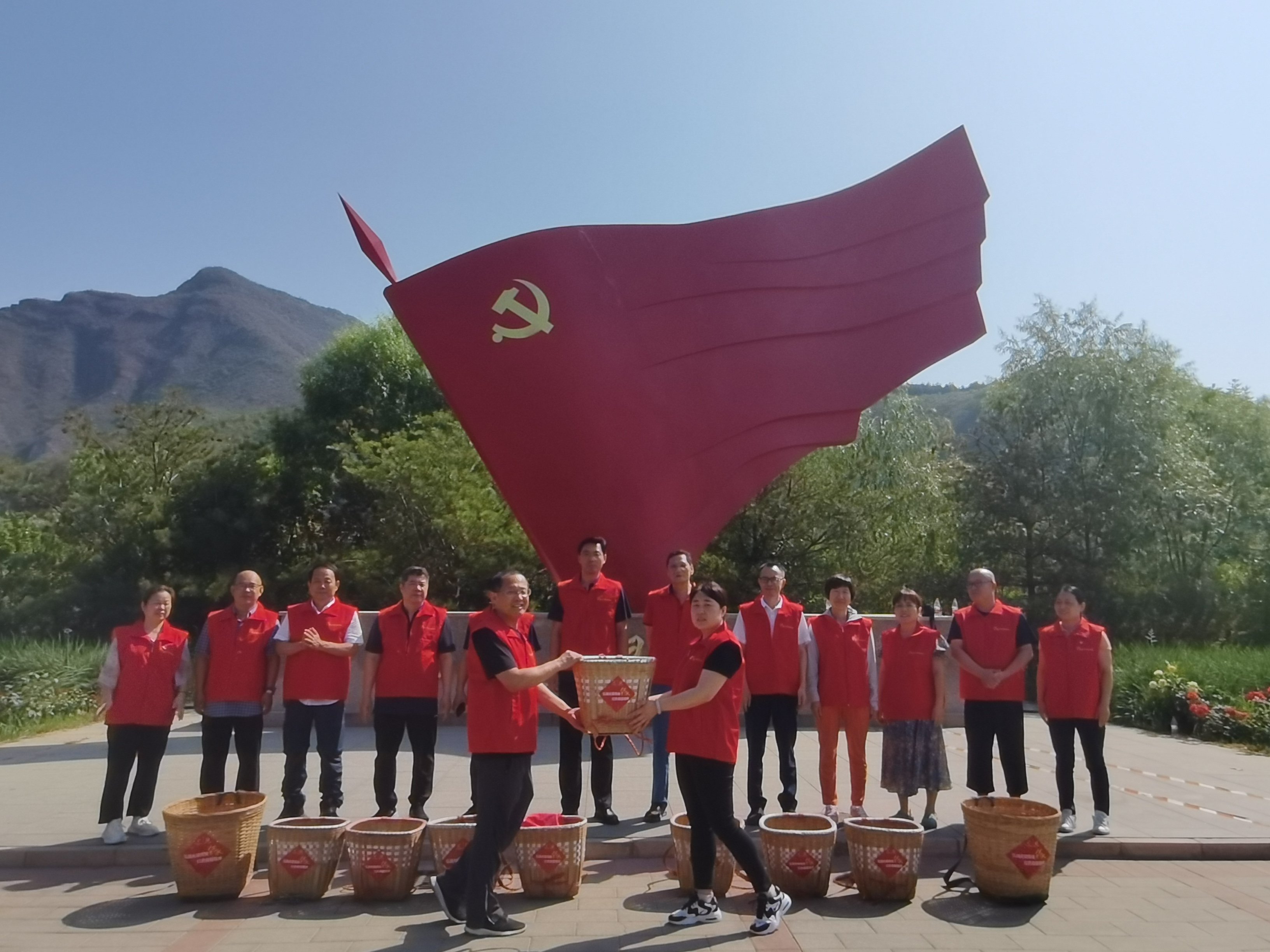 首先,到达红色背篓精神传承教育基地后,支部全体党员在教育基地广场党旗下重温入党誓词。全体党员穿上红马甲,背起象征“背篓精神”的背篓,体会老一辈供销社职工上山下乡的工作生活。最后新老党员举行了“传承红色背篓精神,永远跟党走”红色背篓传递仪式。