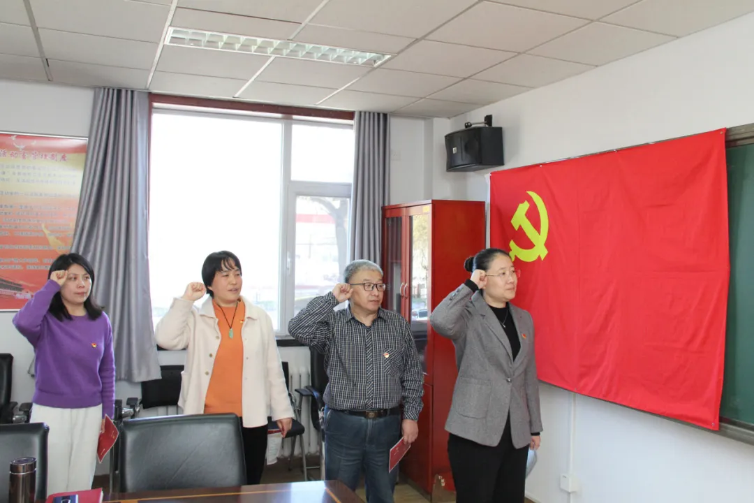 在党员过“政治生日”环节,党支部书记郑敏皓向11月份过“政治生日”的4名党员——赵莹、白树良、孟凡华、许澜馨赠送了“政治生日”贺卡,既传递了党组织对党员的殷切祝福,也给予了一份沉甸甸的政治责任,希望党员们牢记入党誓词,践行对党的承诺,在各自岗位上充分发挥党员先锋模范作用,党员们也许下了自己的“政治生日愿望”。最后,在本月度过政治生日的宣传兼纪检委员赵莹带领下,支部全体党员面对党旗,举起右拳,一起重温入党誓词,在铿锵的誓言中初心受到洗礼,信念更加坚定。