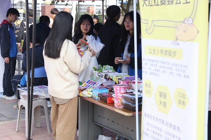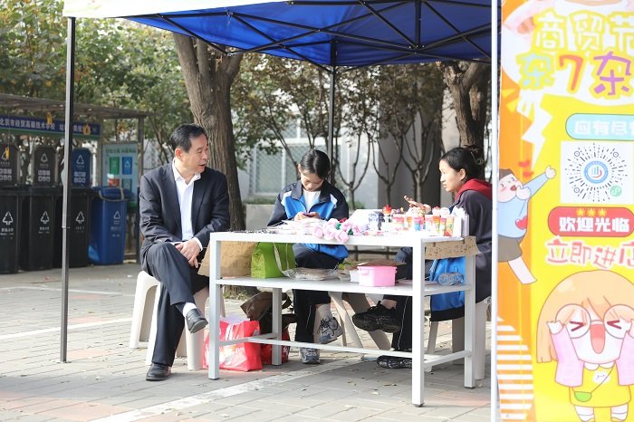 我校老师们亲临现场指导,关心并询问同学们的店铺开设准备工作,切实了解关于店铺营销的基本情况,同时积极参与商贸节活动,并对此次活动给予了高度的赞赏。