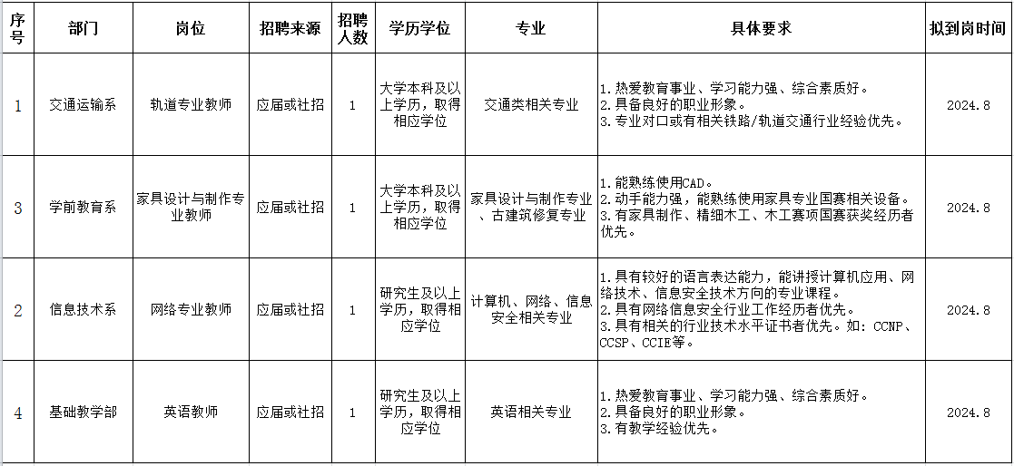 面向社会公开招聘符合岗位条件要求的人员,其中2024年高校应届毕业生须在2024年7月31日前按时毕业,并取得相应学历学位。