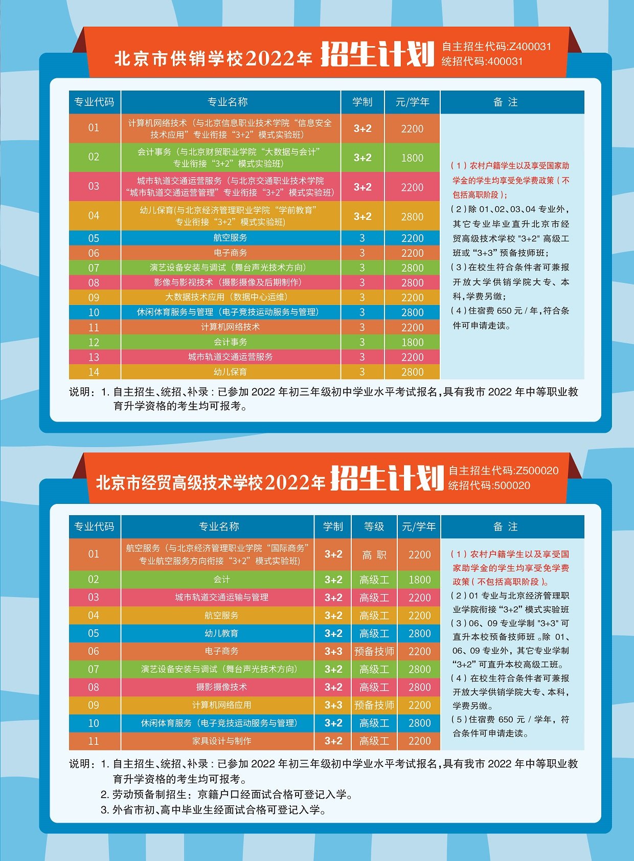 2022年北京市供销学校 北京市经贸高级技术学校 招生简章