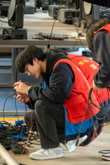 以2025年校园技能文化节为契机,为提高学生专用工具使用水平,培养学生舞台灯光系统设备连接调试能力,感受技能的魅力。信息技术系于2025年11月技能文化节期间在灯光音响实训中心,举办了“舞台灯光系统设备连接”竞赛(决赛),演艺设备安装与调试专业全体学生参与了该赛项的预赛。