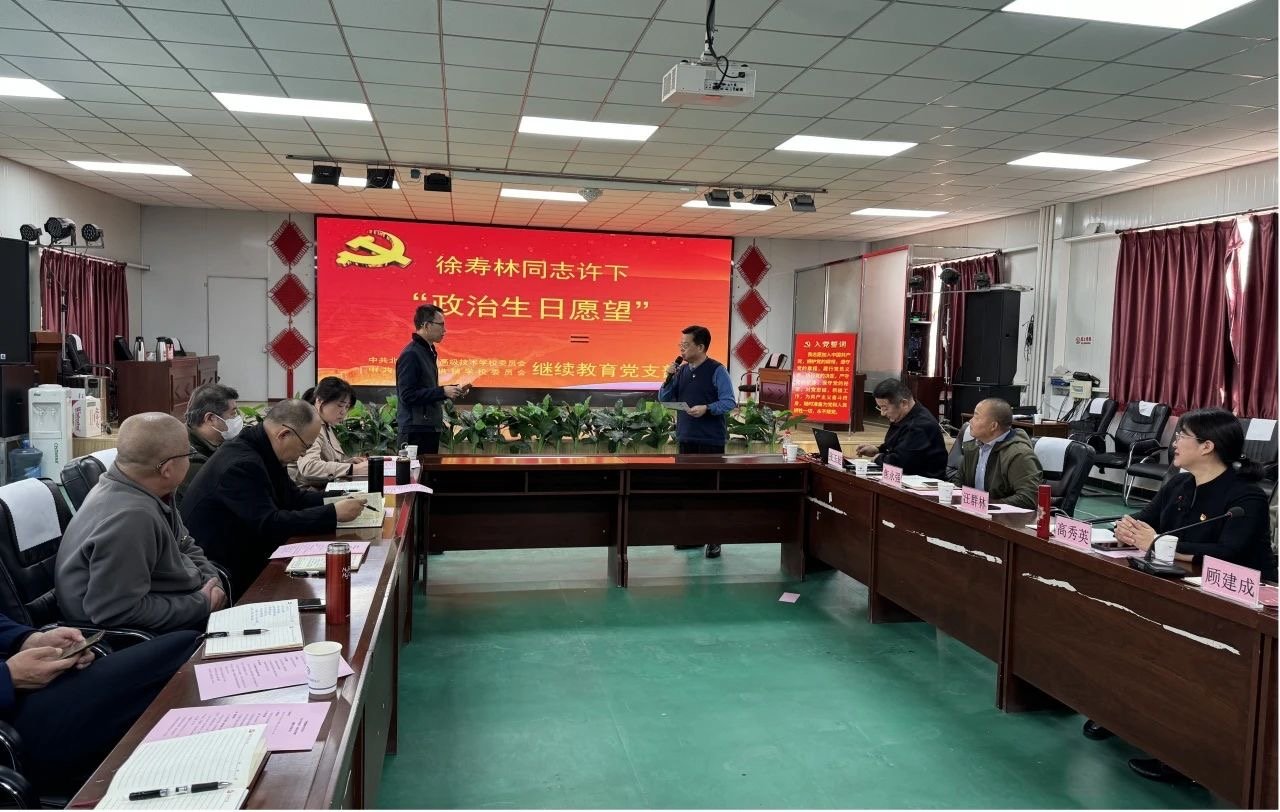 党日活动中,为支部党员李影、徐寿林、宋海涛举办政治生日仪式,学校党委书记高秀英、纪委书记汪群林、东坟村党支部书记顾建成为三位党员赠送党员政治生日贺卡,三位党员真挚许下政治心愿,祝福党和国家繁荣昌盛,全体党员重温入党誓词。