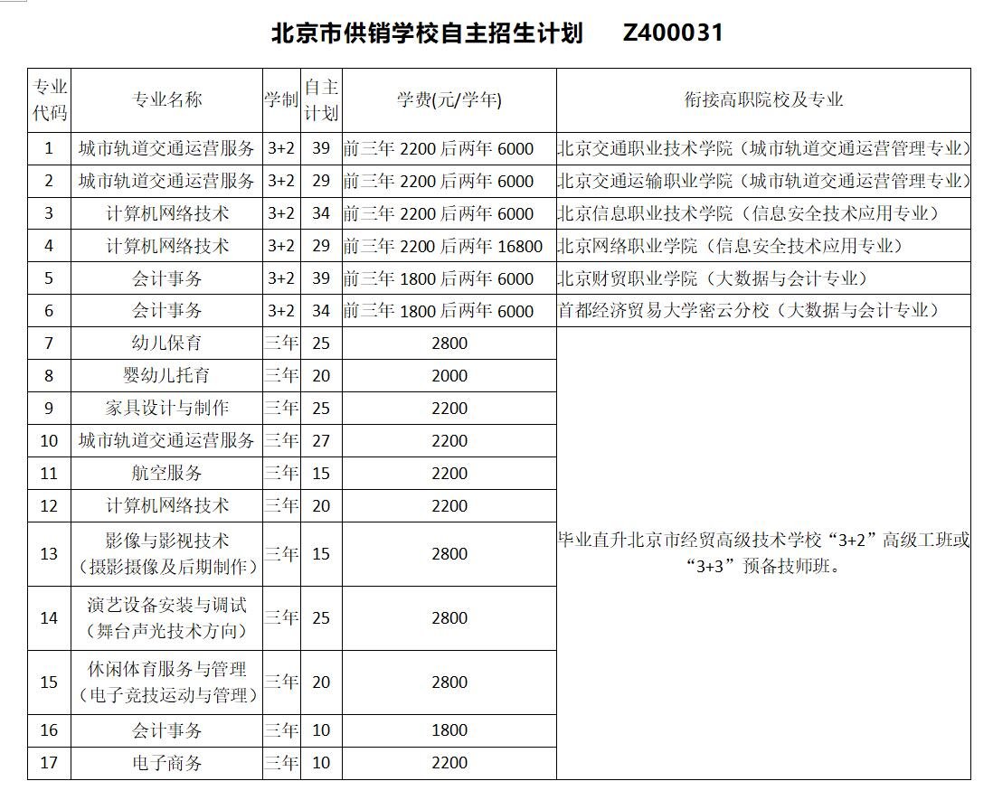 2024年北京市供销学校、北京市经贸高级技术学校自主招生报考指南