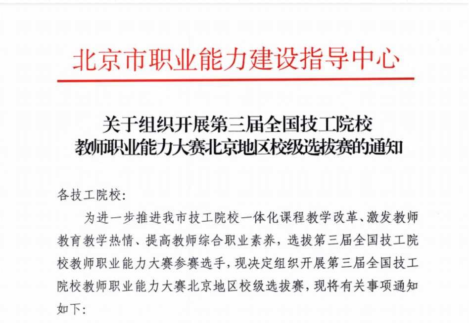 2021年8月-11月期间,我校五位教师参加了第三届全国技工院校教师职业能力大赛北京选拔赛。