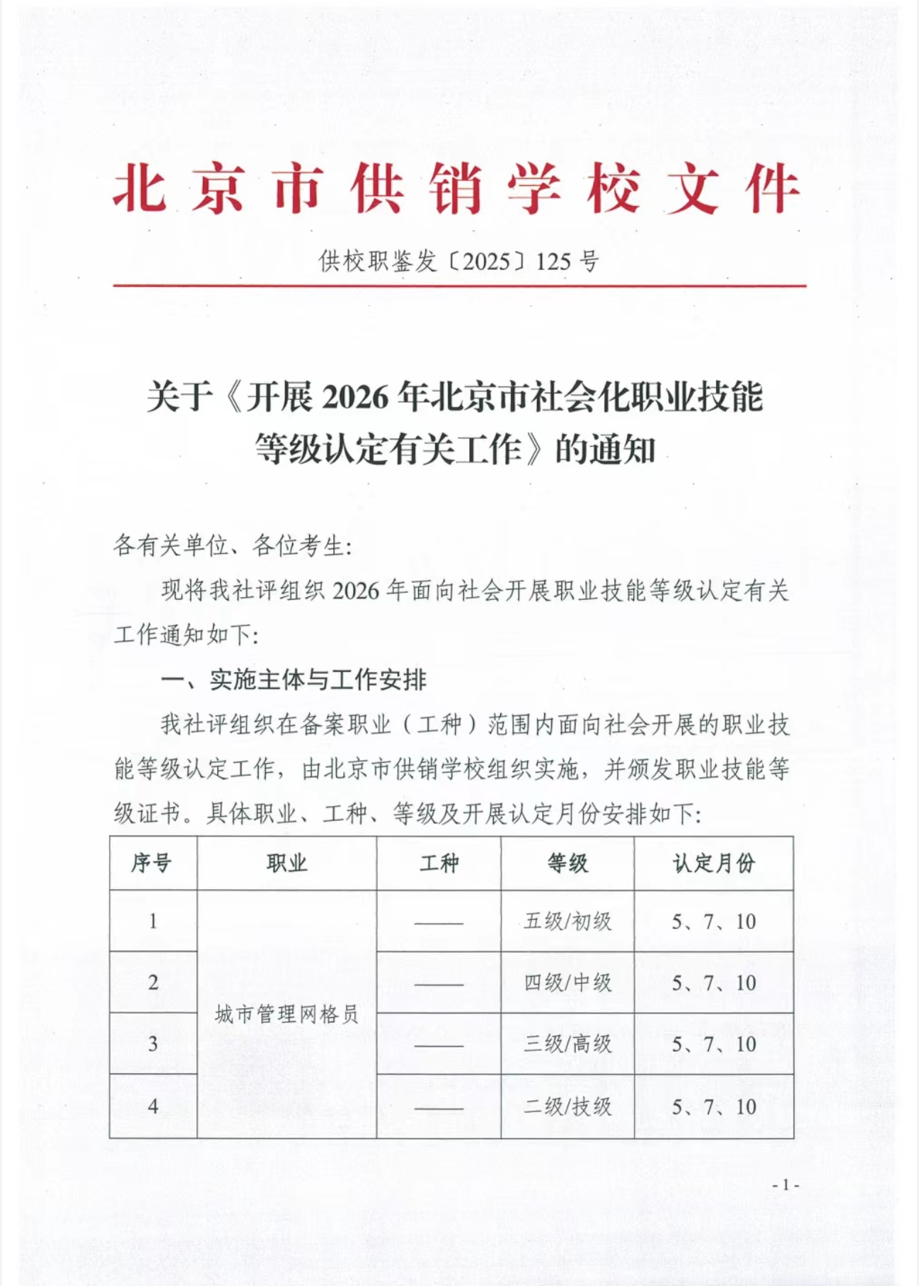 关于《开展2026年北京市社会化职业技能等级认定有关工作》的通知