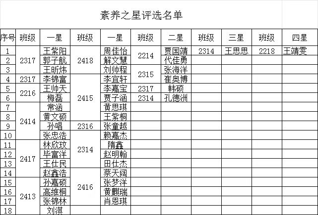 评选过程包括学生展示、教师问答和评委打分等环节,最终共有43名学生荣获“素养之星”称号。其中一星35人,二星6人,三星、四星各1人。名单如下: