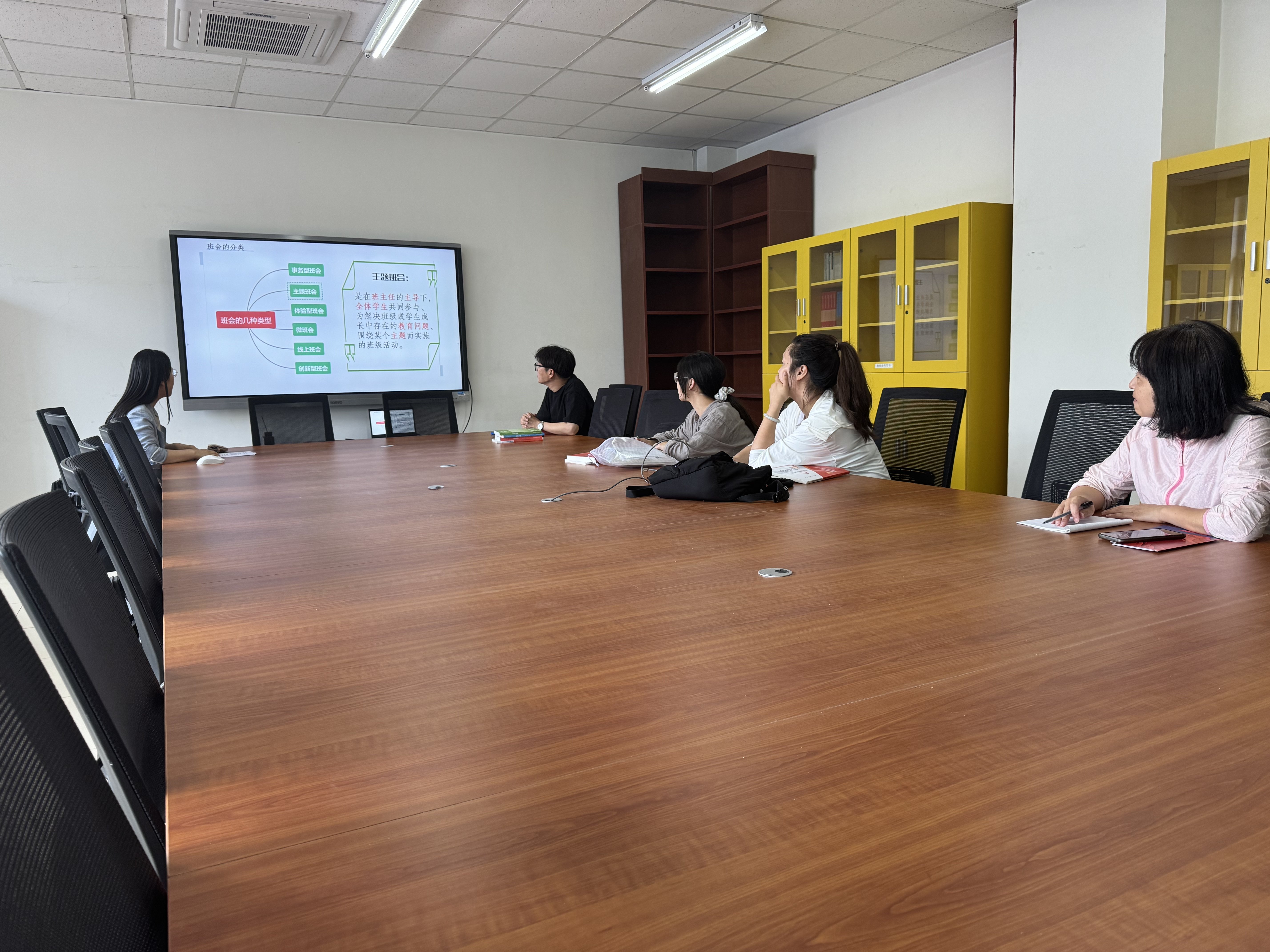 于老师主要讲解了班级活动策划的撰写构思,结合她自身的经历,生动地向大家介绍了撰写时的重点和技巧,以及拍摄时的前期准备、人员分工和活动脚本内容。此外,于老师还推荐了多个线上学习平台和资源,帮助老师们在准备过程中不断充实自己。